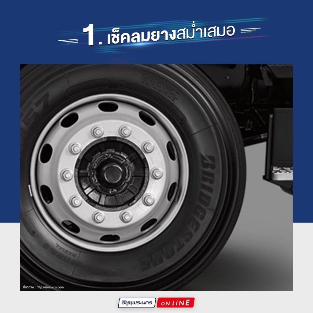 รถบรรทุกคือยานพาหนะขนาดใหญ่ที่สามารถรับน้ำหนักบรรทุกได้มากกว่ารถยนต์ทั่วไป ฐานของตัวรถบรรทุกจึงควรได้รับการดูแลรักษามากกว่ารถยนต์ปกติ โดยเฉพาะยางรถบรรทุก ดังนั้นการตรวจเช็คลมยางเป็นการดูแลรถที่ง่ายที่สุด โดยสามารถทำได้โดยการสังเกตล้อยางก่อนการออกเดินทาง และเติมลมให้เรียบร้อยเมื่อมีโอกาส โดยลมยางที่เหมาะสมนั้นต้องคำนึงถึงน้ำหนักรถ น้ำหนักสิ่งของที่บรรทุก ความเร็วที่ใช้ และพื้นถนนที่เราต้องวิ่งผ่าน เราสามารถเติมลมยางได้ตั้งแต่ 85-100 psi ขึ้นอยู่กับขนาดยาง หากอยู่ที่ตำแหน่งพ่วงหรือล้อลากที่ต้องรับน้ำหนักการบรรทุกเยอะๆ ให้เพิ่มแรงดันเป็น 100-125 psi ตามขนาดยาง และยังสามารถเติมลมยางได้มากกว่า 130 psi ในยางขนาดใหญ่มากๆ นั่นเองครับ
