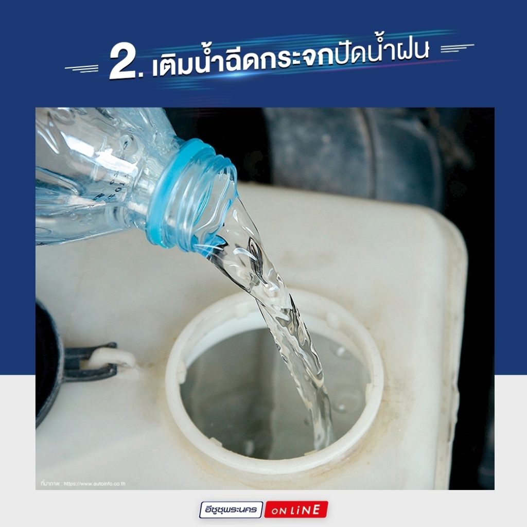 2) เติมน้ำฉีดกระจกปัดน้ำฝน